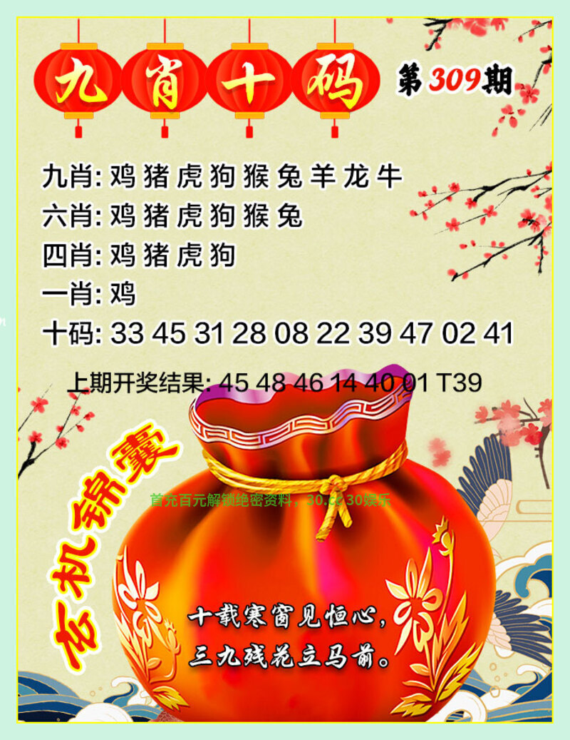309期:稳中九肖:羊马鸡猪蛇狗猴龙
